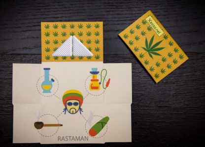 Xessonet unfolds to a perfect on-the-go rolling tray, with folding lines to center the ground weed and funnel it onto your rolling paper or blunt.